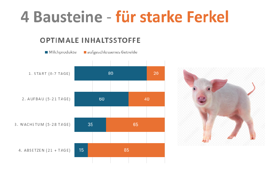 Fehlt diese Vorbereitung, reagiert der Verdauungstrakt auf die abrupte Umstellung beim Absetzen häufig mit reduzierter Futteraufnahme, Verdauungsstörungen und Leistungseinbußen.