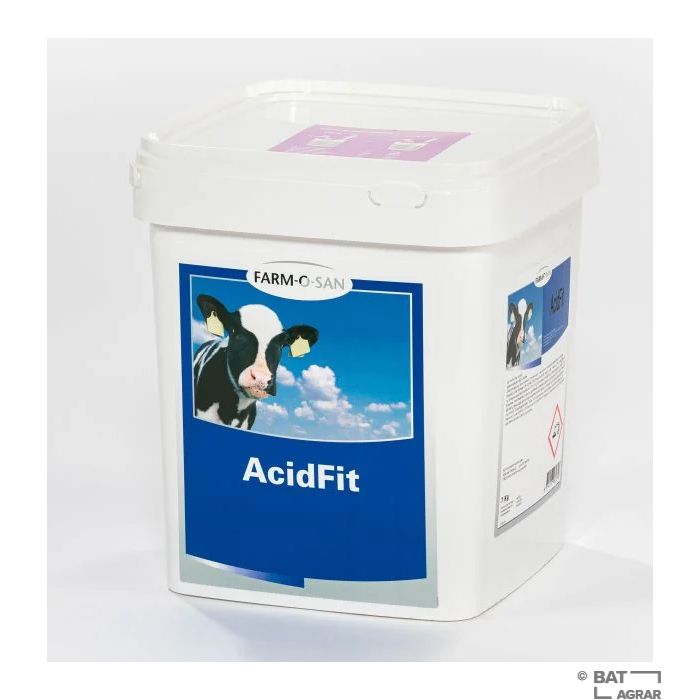 AcidFit dient zur Ansäuerung von Kälbermilch und Vollmilch. Es enthält eine fein abgestimmte Säurekombination, die von Kälbern sehr gut vertragen wird. Durch den Einsatz kann der pH-Wert von Milch gesenkt werden. Farm-O-San AcidFit überzeugt mit einfacher Handhabung, da es als Pulver erhältlich ist