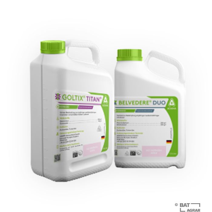 Goltix Titan Belvedere Pack ist eine Herbizid-Kombination gegen einjährige zweikeimblättrige Unkräuter in Zucker- und Futterrübe im Nachauflauf. Die vier enthaltenen Wirkstoffe Metamitron und Quinmerac im Goltix Titan sowie Phenmedipham und Ethofumesat im Belvedere Duo erfassen über Blatt- und Bodenwirkung zusammen ein sehr breites Spektrum von Unkräutern und sind hochverträglich für die Rübe.
