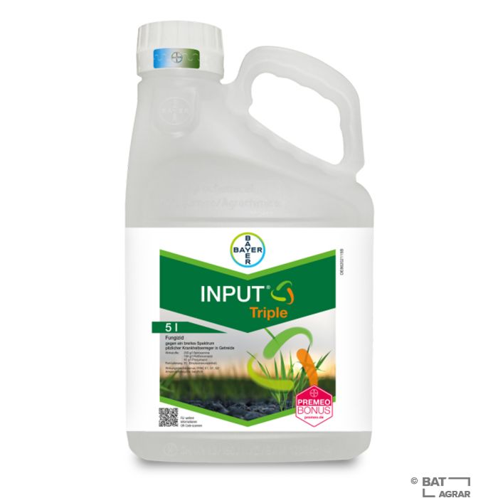 Input Triple ist ein Fungizid mit breitem Wirkungsspektrum gegen Mehltau, Halmbruch und Septoria in Getreide. Das Fungizid wirkt vorbeugend (protektiv), stoppt vorhandene Infektionen (kurativ) und verhindert deren weitere Ausbreitung.