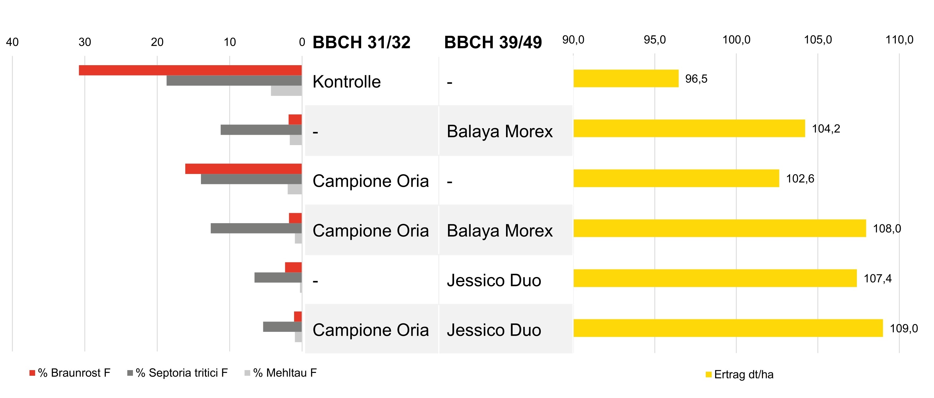T2 (BBCH 39/49): Balaya 1,0 l/ha + Morex 1,5 l/ha