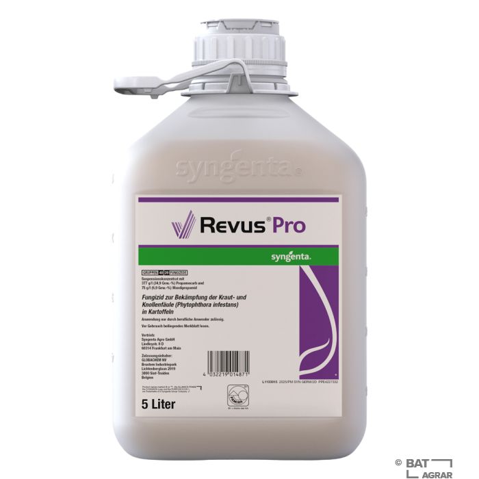 Revus Pro ist ein Fungizid gegen Phytophthora in der Kartoffel bis zur Blüte. Das Pflanzenschutzmittel kombiniert die Wirkstoffe Propamocarb und Mandipropamid, wodurch das Fungizid systemisch wirkt und translaminar verteilt wird. Durch die Kombination wird eine protektive und eine kurative Wirkung erzielt.