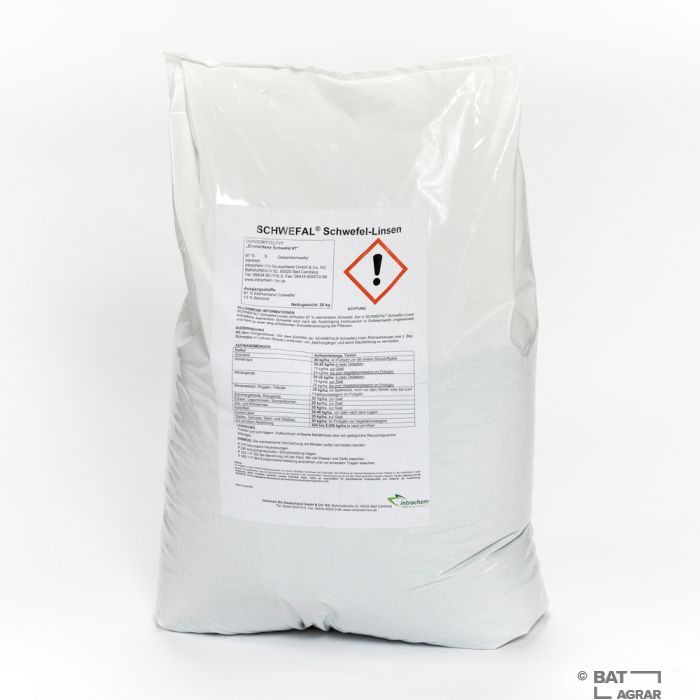 Schwefel-Linsen ist ein elementar Schwefel haltiger Blattdünger. Schwefel ist ein wichtiger Bestandteil bei der Ertrags- und Qualitätsausbildung sowie für den Stoffwechsel der Pflanze.