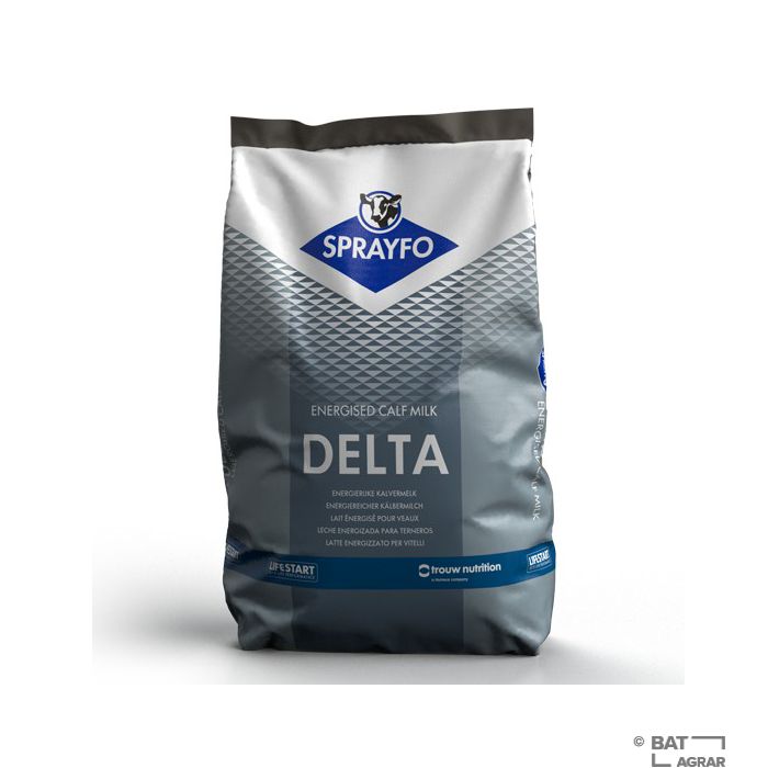 Sprayfo Delta mit 50% Magermilchpulver, hat einen hohen Fettgehalt, der die Kälber mit viel Energie vorsorgt. Durch die ausgewogene Vitamin- und Mineralstoffzusammensetzung bekommen die Kälber den perfekten Start ins Leben. Die Umstellung von der traditionellen, restriktiven Fütterung auf eine intensive LifeStart Aufzucht bedeutet, die Milchversorgung zu verdoppeln und damit höhere Wachstumsraten zu erzielen. 22,5% Rohprotein.